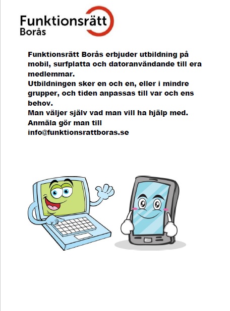 Alla våra medlemmar kan nu få hjälp att lära sig mobil, surfplatta och dator! Kan ni inte mejla funktionsrätt så ring FUBs kansli på 0760176444 så hjälper jag er med att anmäla er