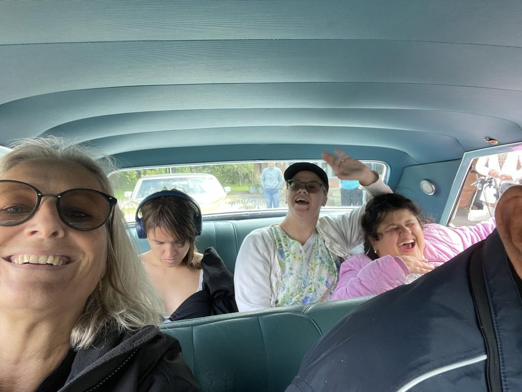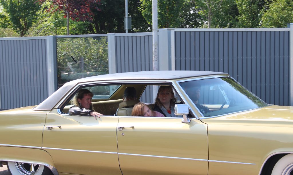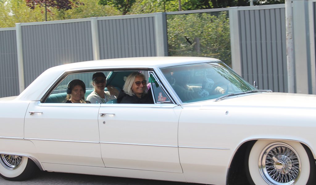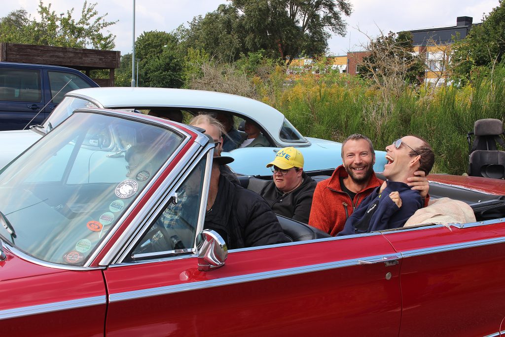 På Murarevägen väntar personal och anhöriga på att bilarna ska komma tillbaka. En av de första som dyker upp är Karin med gänget som åker i en Cadillac. Hon är från Älvsered och är med för första gången.
