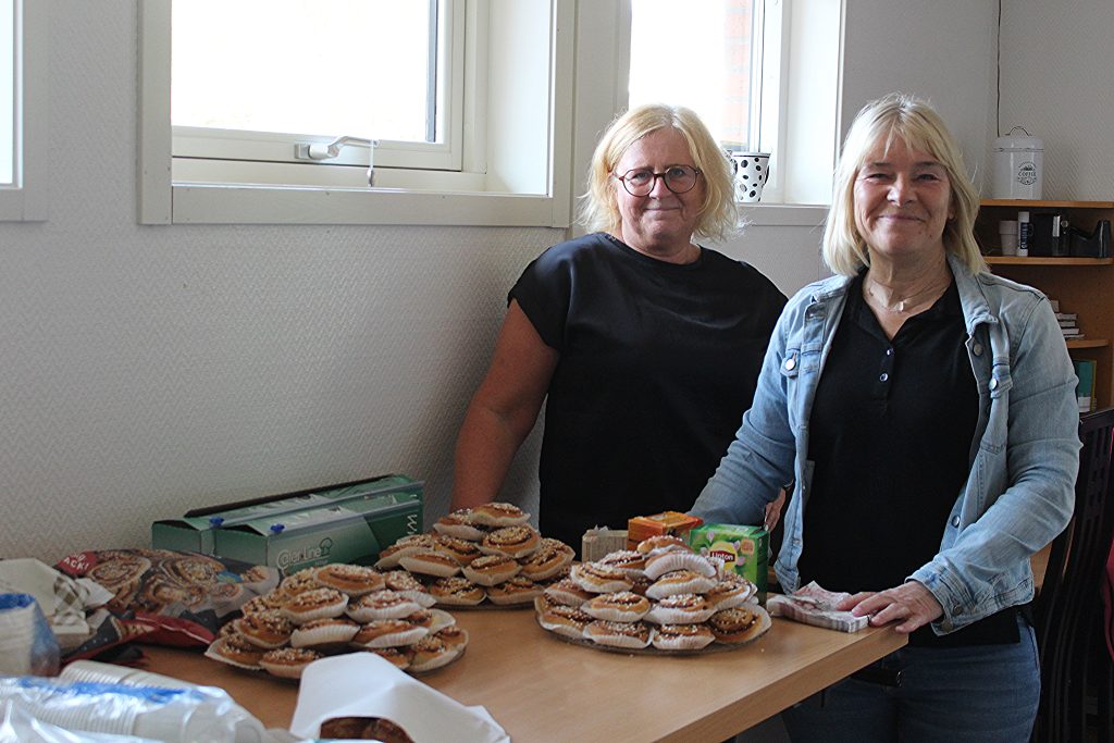 Sofia och Charlott står redo med kaffe och bullar när alla kommer.