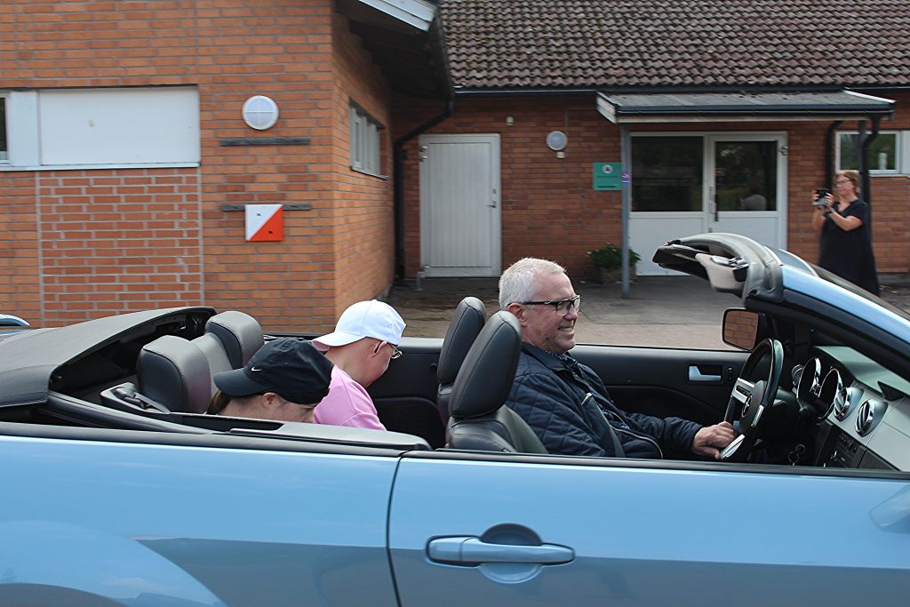 I Håkans superfina Mustang har Isabelle och Åsa sjunkit ner i baksätet. Det är precis att de syns. Ser rätt skönt ut.