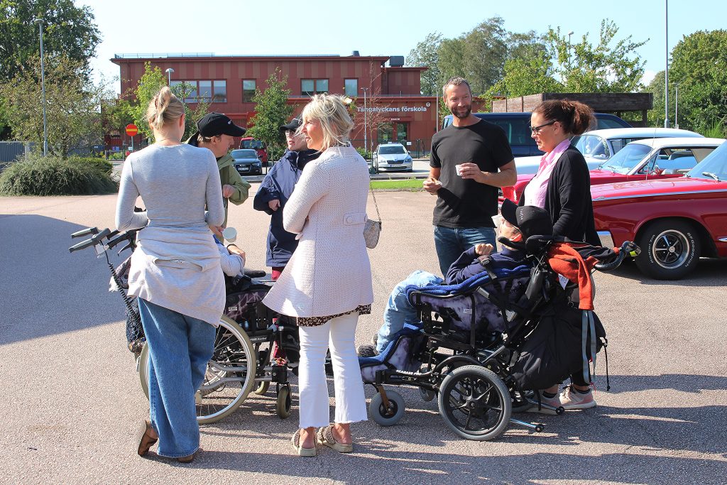 Det är liv och rörelse när alla deltagare och chaufförer med bilar anländer. Inger höll en kort information om hur man ordnar med bilar och deltagare som har svårt att komma in i bilarna och behöver hjälp. Det var flera stycken idag.