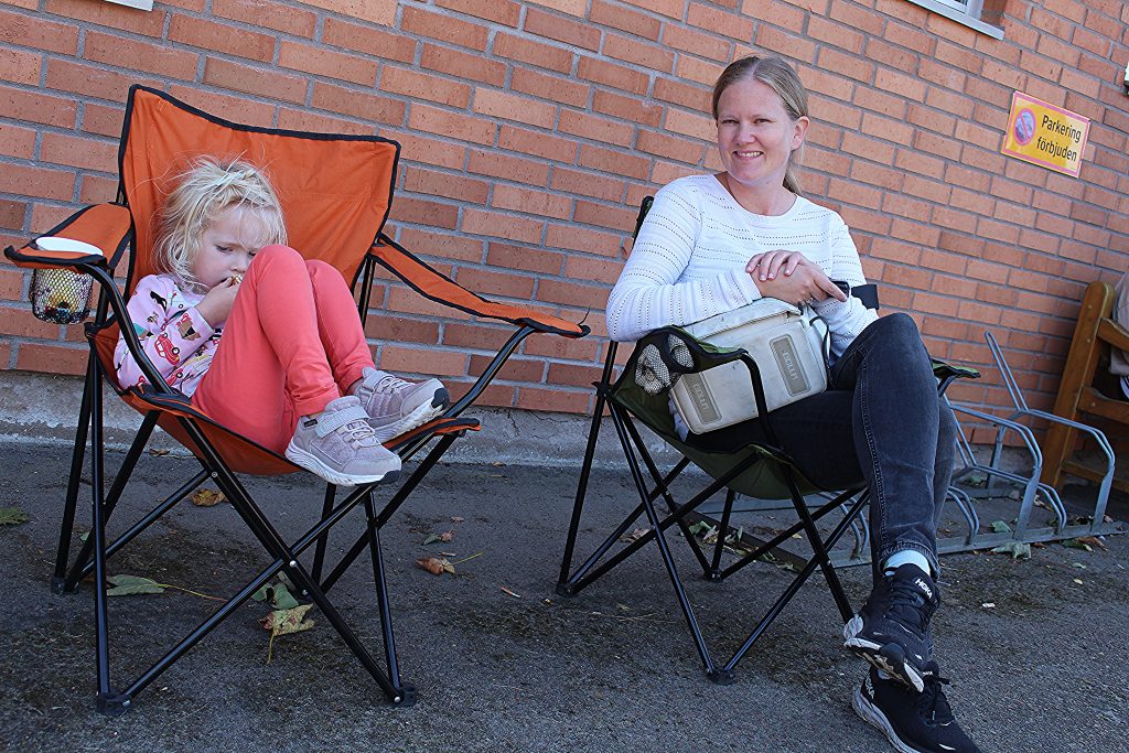Anita och Fredrik hittade en plats mellan bilarna som inte var så blåsigt.