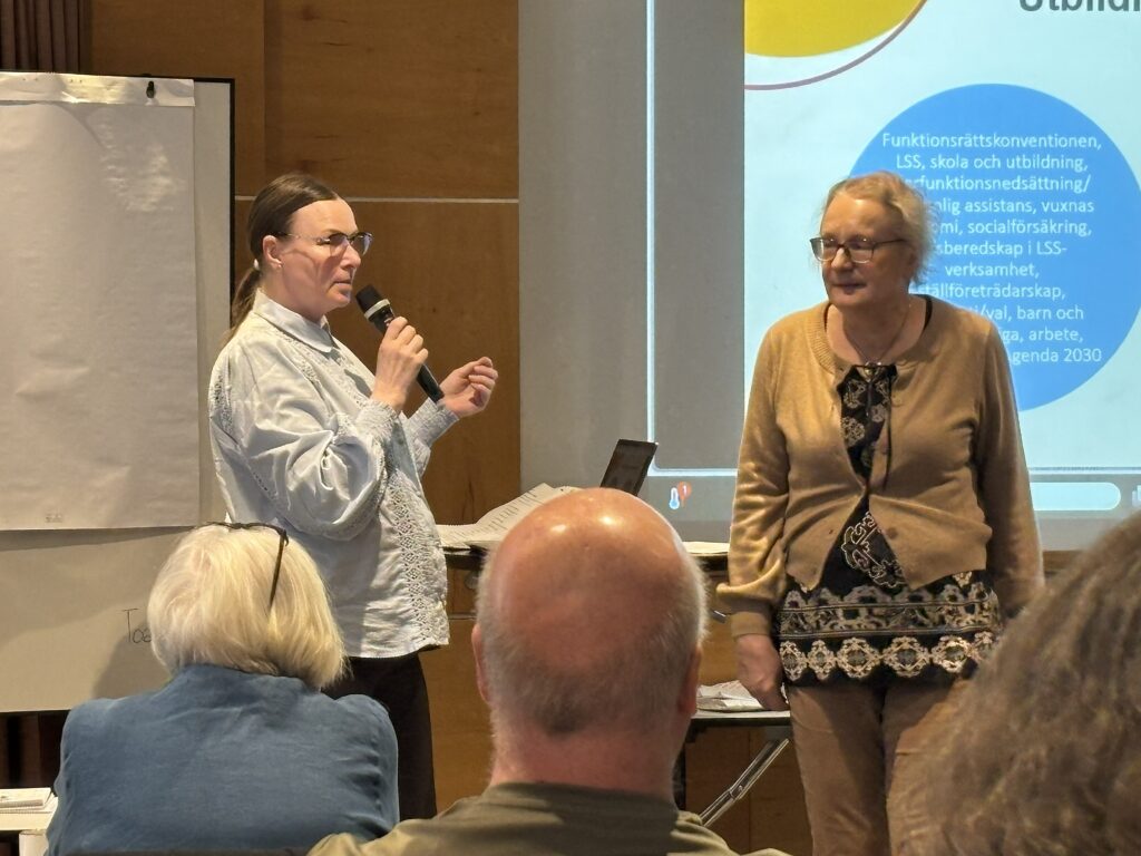 Nina Alander och Eva Borgström från Riksförbundet har varit med och tagit fram material kring viktiga frågor som berör oss. Nina och Eva presenterade programmet för intressepolitiskt arbete inför valet. I progammet fanns många bra tips och idéer om vad man kan göra i lokalföreningarna.