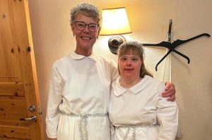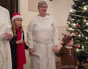 När det mesta är klart kommer Bernt med sitt dragspel och hans fru Inger med barnbarn. Då är det dags att börja öva inför Luciatåget.