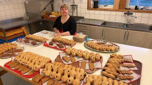 I köket roddas det med lussekatter och pepparkakor. I år kom lussekatterna från ICA kvantum som bakat dem själva och levererades varma. Lovisa trivs bra i havet av lussekatter.