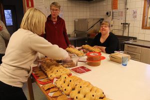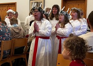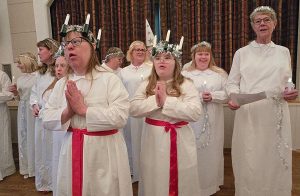 När Luciatåget vandrat ut serveras lussekatter, pepparkakor och kaffe. Under tiden säljs lotter till vårt lotteri och Sverigelotter. Den finaste vinsten idag var skänkt av Lars Dunemark. En skärbräda i trä som han gjort själv.