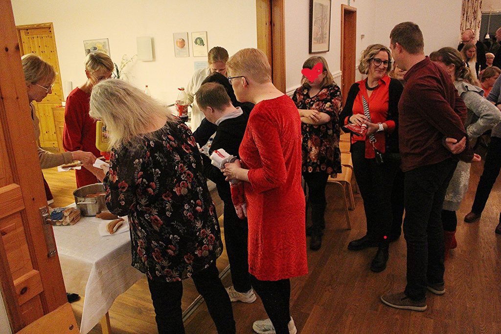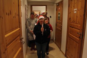 Efter festen åkte vi till Slättens gruppboende med lite lussekatter, pepparkakor, korv med bröd och skumtomtar som blivit över eftersom de fick avboka alla på grund av magsjuka. Vi hoppas ni blir bra och kan ta del av godsakerna.