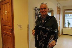 När alla fikat färdigt och lotterna är köpta så tar Bernt fram sitt dragspel och Eva står redo att leda alla i dansen.