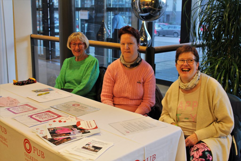I foajén hade FUB Falkenberg ett bord med information. Monica, Elin och Gunilla var redo att prata med alla som kom.