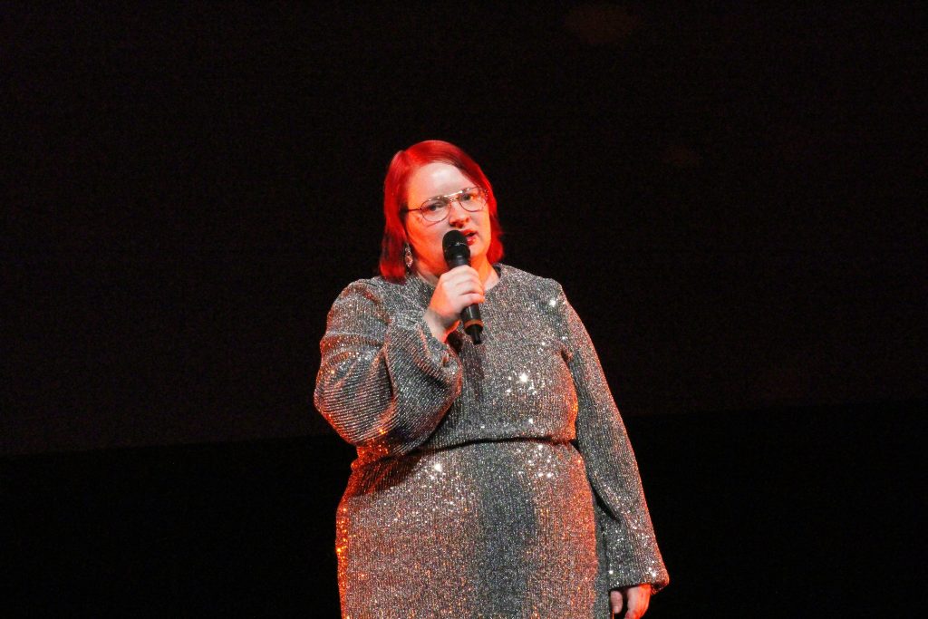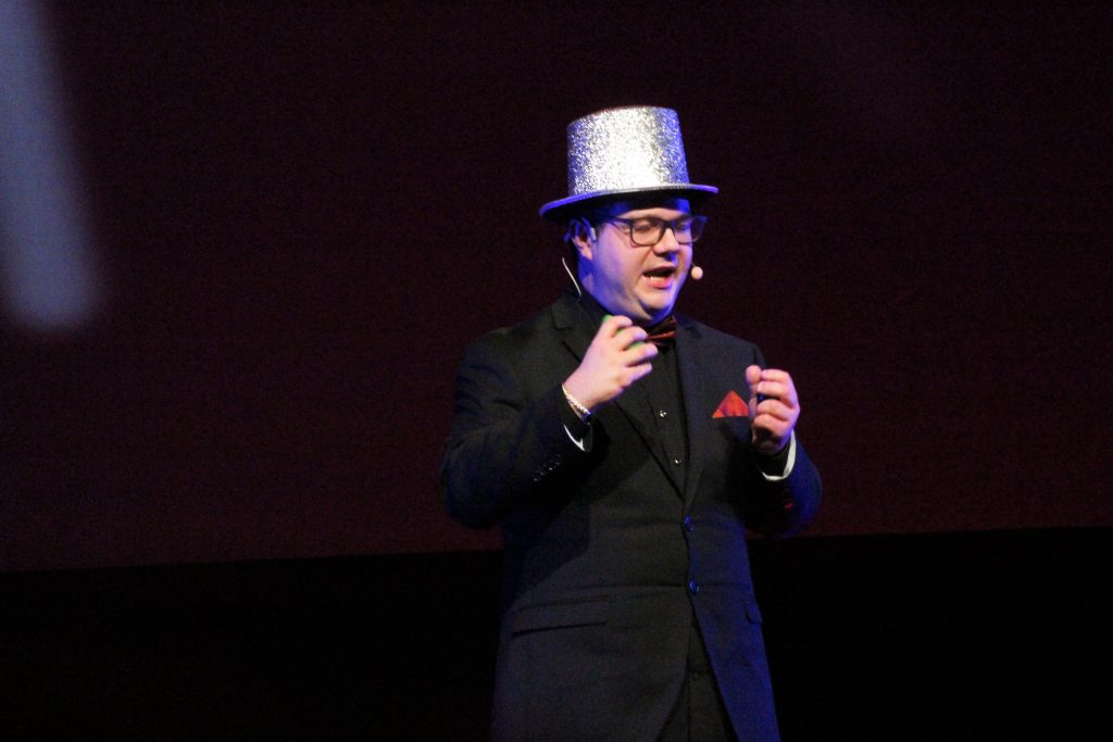 Konferencier för kvällen var Carolin Johansson. Med sig hade hon sin docka Elsa. Jörgen var också på scen och pratade.