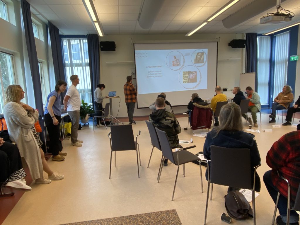 När alla presenterat sig kom elever från Praktisk linje på folkhögskolan in och höll i ett quiz med gruppen. Det är roligt att få träffa andra elever som går på skolan varje dag.