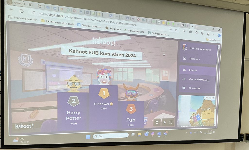 Att spela Kahoot var inte många som provat på tidigare. Det är ett spel där man kan skapa sina egna quiz och frågor. I spelet kan man lära sig mycket.