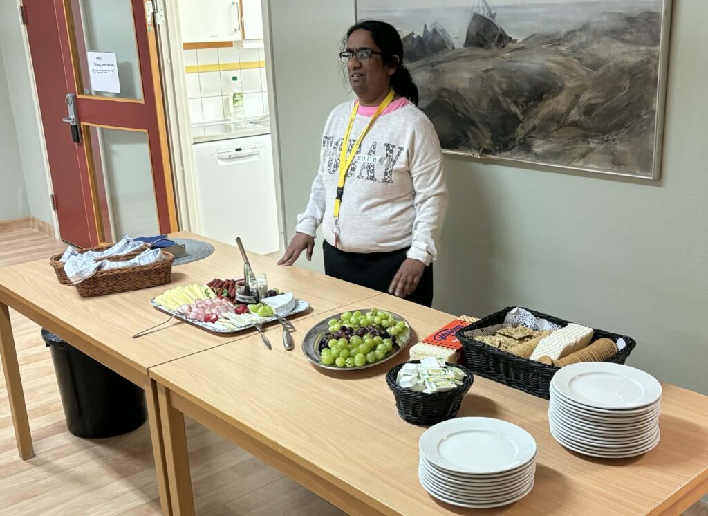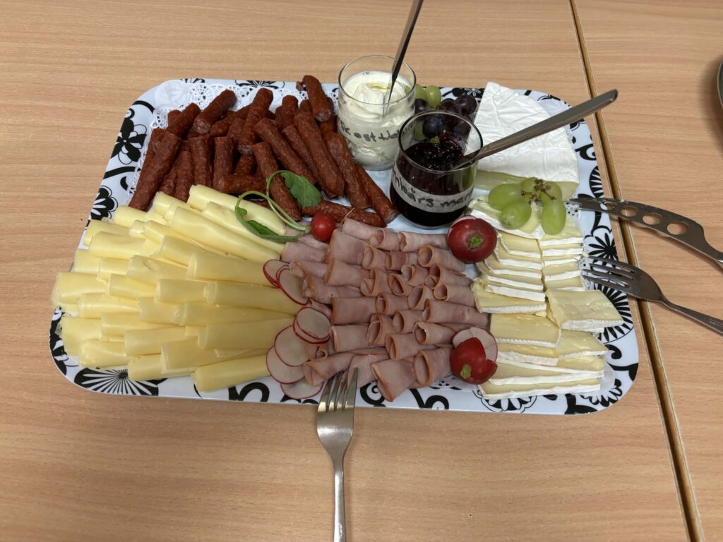 Som traditionen är på lördagskvällen så står det ostbricka på menyn. Det är skinka, korv ostar och mycket mer. Gott!!