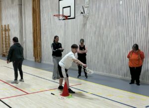 Efter förmiddagsfikat begav sig alla till Idrottshallen där det blev femkamp.