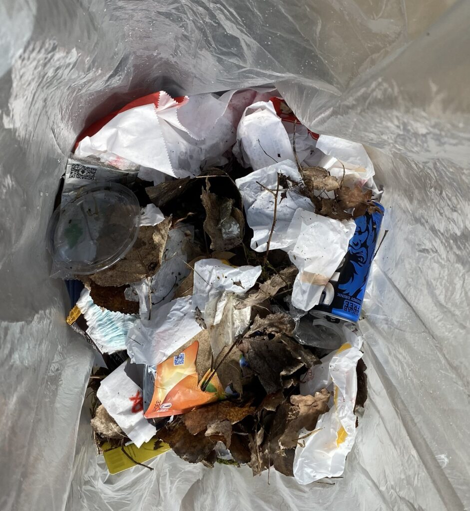 Slänga skräp i naturen vet alla att man inte ska göra. Här har man samlat ihop en del skräp som låg på marken.
