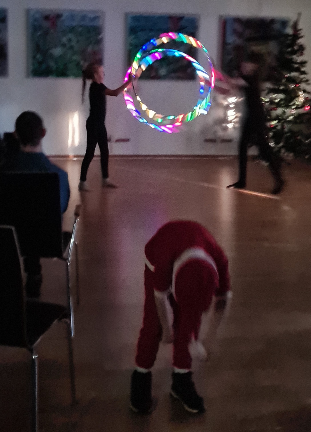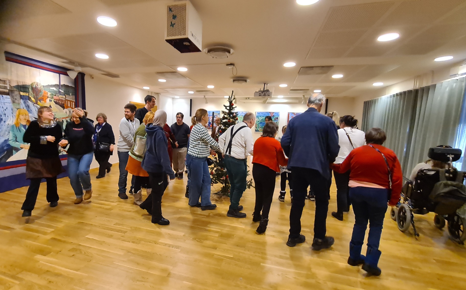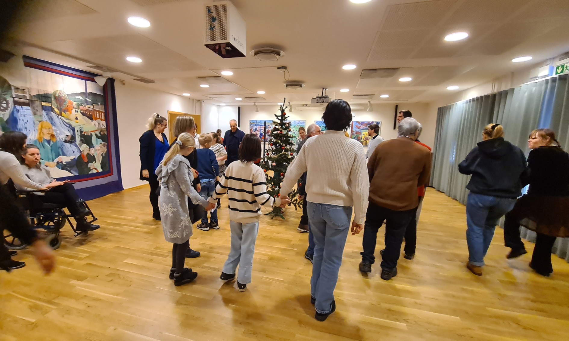 Vi avslutar julen med stor fest. Lions klubb Möndal-Mölnlycke och FUB Härryda har ordnat detta tillsammans i många år. Den 10 januari kom över 80 personer till Ekdalagårdens stora lokaler i Mölnlycke. Kulturskolans unga, duktiga cirkusartister underhöll. Spelman Ingvar spelade dragspel för oss alla. Fika med smaskig tårta i caféet. Därefter dans kring granen. Ingvar spelade ”Räven raskar över isen” och alla andra kända juldans-låtar. Vid avslutningen fick varje besökare en härlig godispåse.
