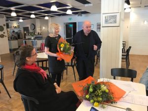 Jan Petttersson avtackades av ordförande Solveig Lundström efter många år i länsförbundets styrelse.
