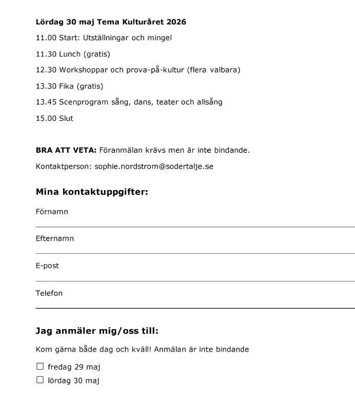 För utskrift av programblad och anmälningsblankett, kolla i Bilagor.