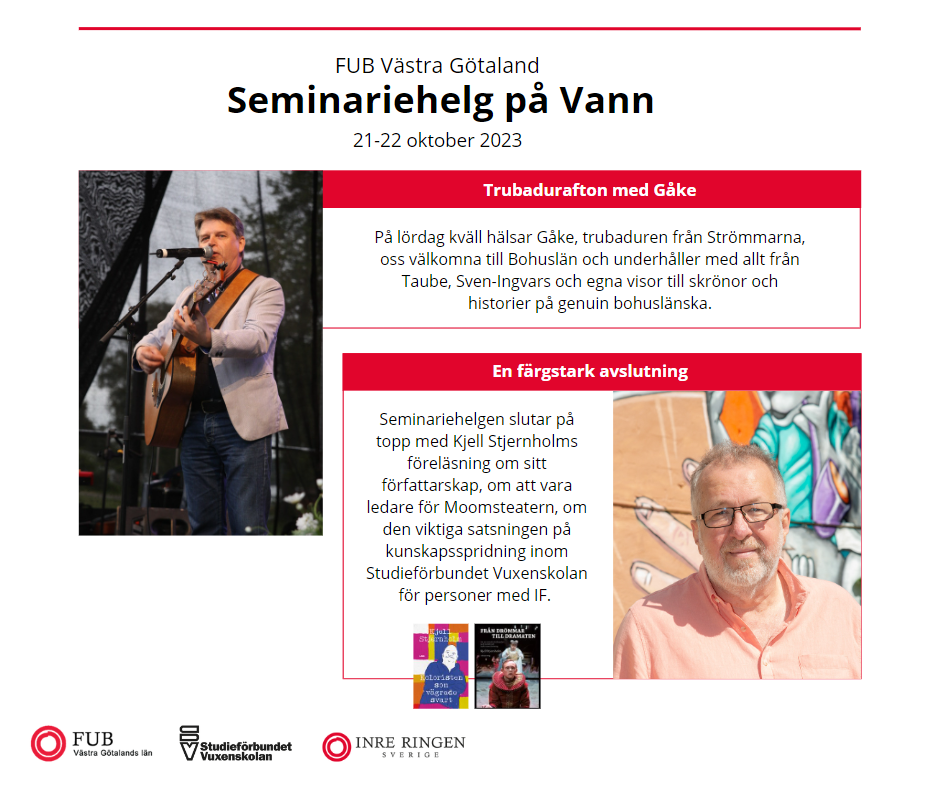 FUB Västra Götaland bjuder in alla medlemmar och intresserade till denna seminariehelg.