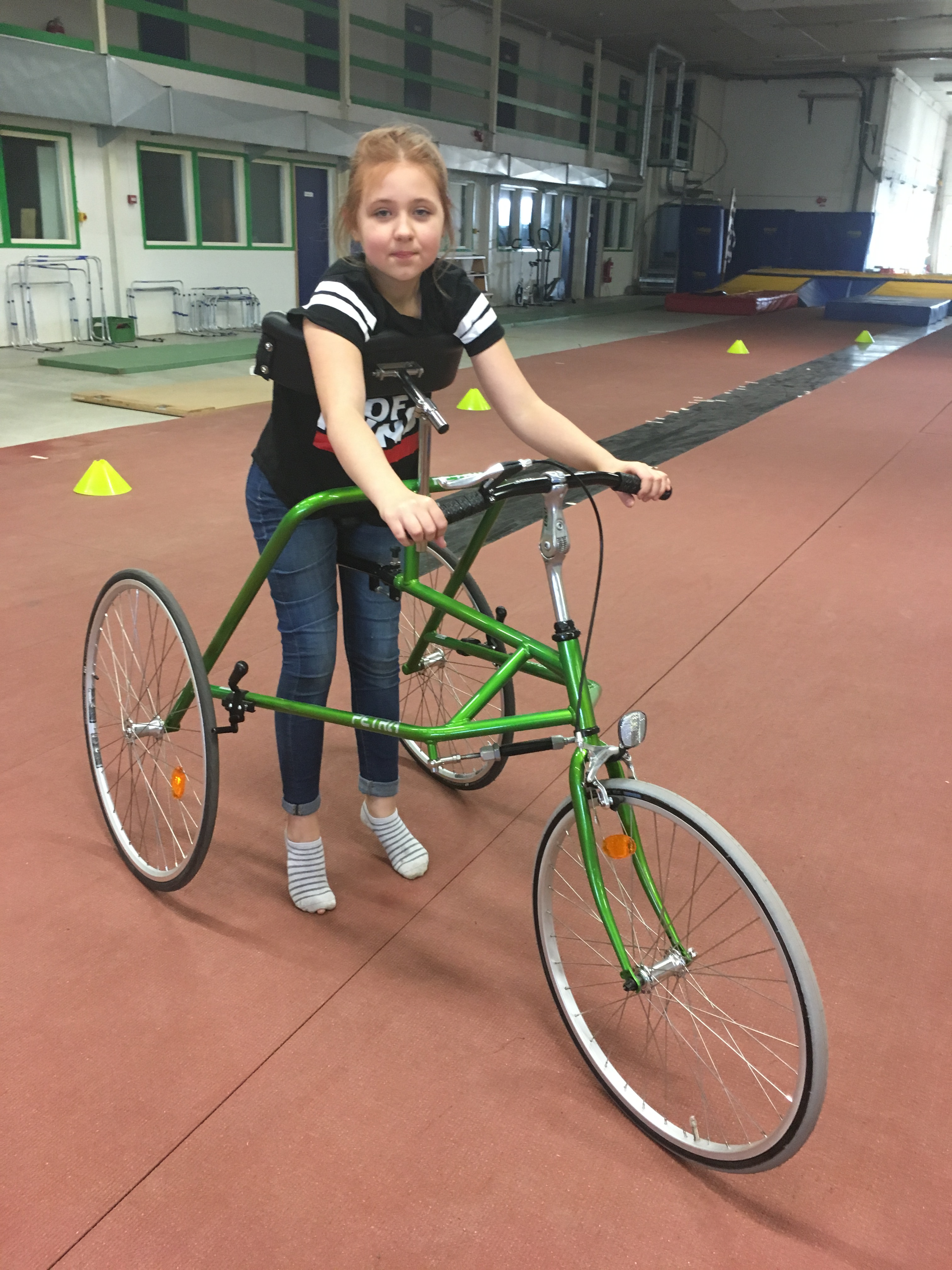 En av deltagarna hos FUB Klippan Åstorp, Nelly Reinhold, med racerunnercykel!