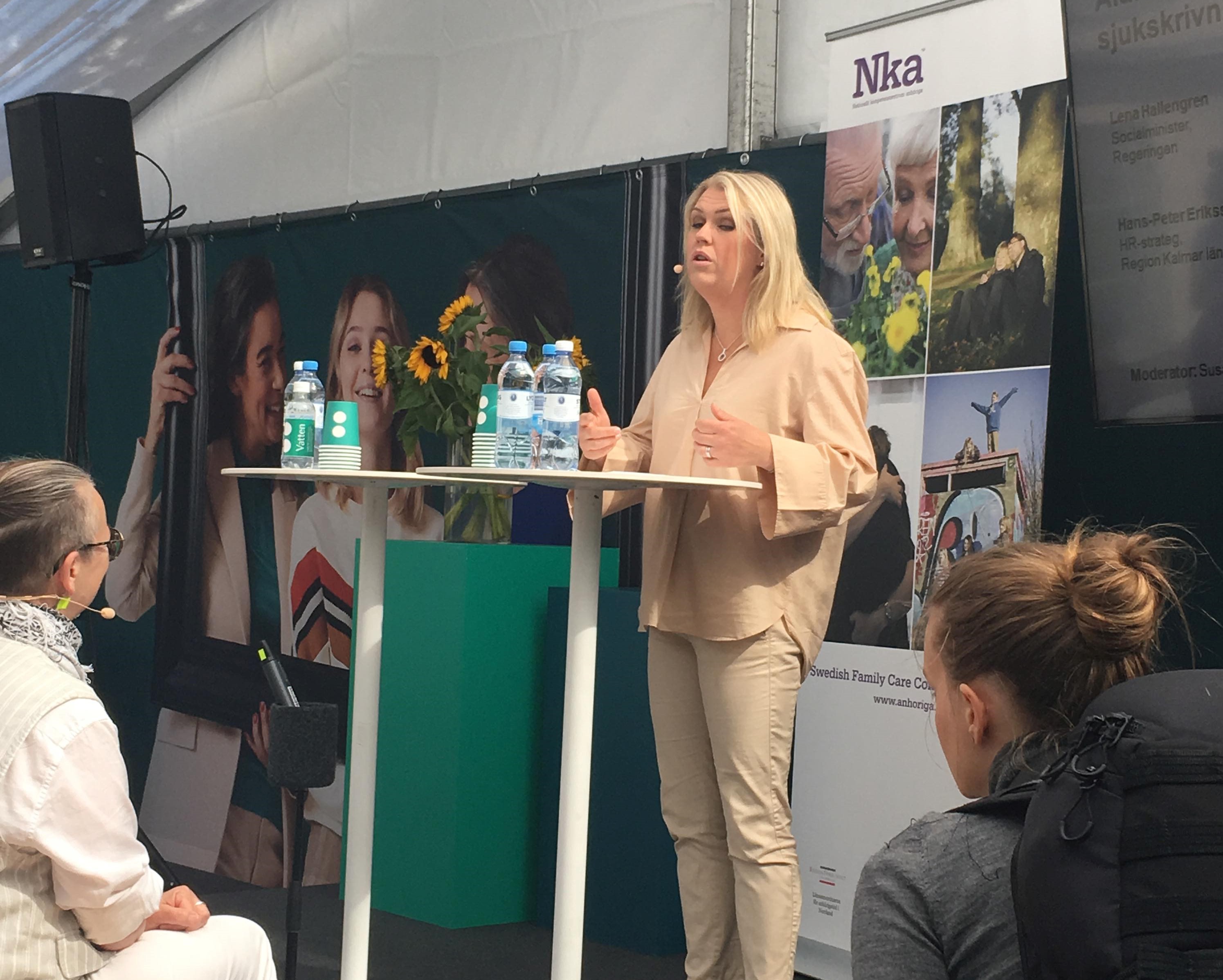 Lena Hallengren, socialminister, inledde samtalet om anhörigstöd.