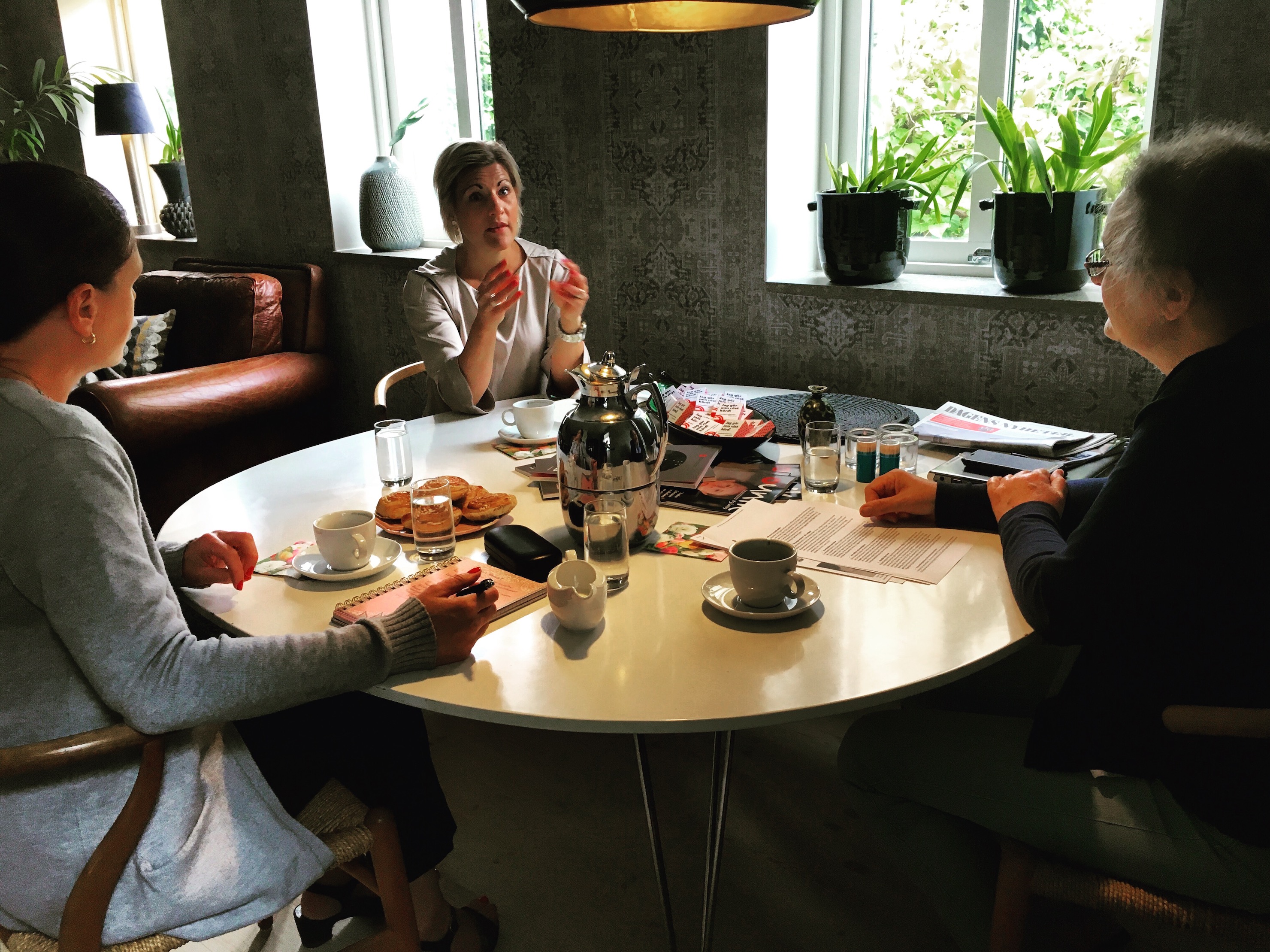 Maria Sundström och Eva Borgström pratar LSS med Sofia Nilsson (Centerpartiet) som är riksdagsledamot i Socialutskottet.
