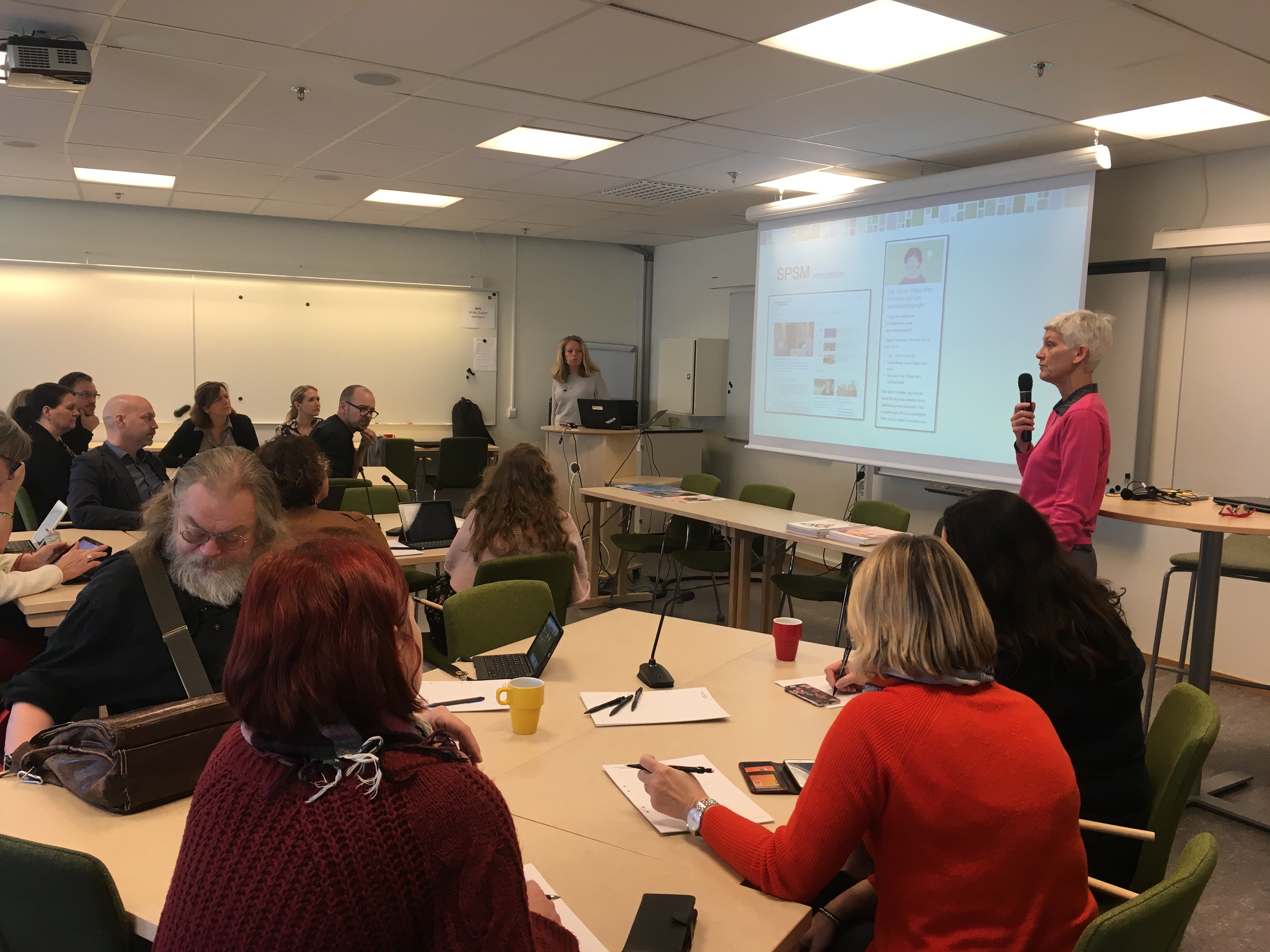 Therese Lindahl, SPSM, och Eva-Lisa Andersson, SPSM, presenterar upplägg för dagen.